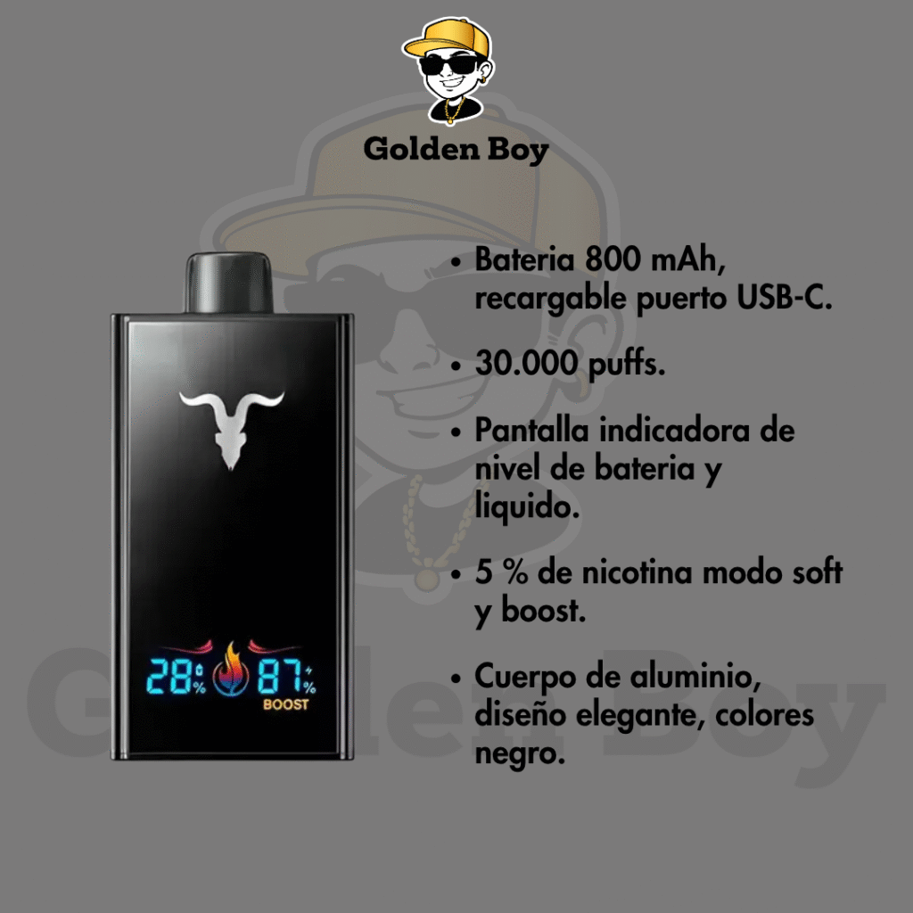 Bateria 1000 mAh,recargable puerto USB-C, 45.000 puffs, Pantalla indicadora de nivel de bateria y liquido, 5% de nicotina, Modelo cybertech Autofill
