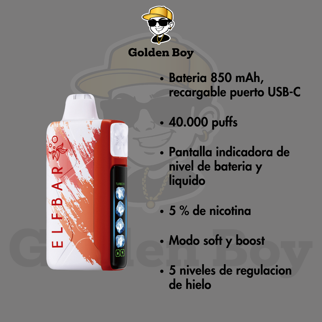 Este dispositivo combina una gran autonomía de caladas con características unicas como, tecnología Mesh Coil para un sabor y producción de vapor intensos y consistentes, cinco niveles ajustables de intensidad de frío para una experiencia de vapeo personalizada, batería recargable integrada de 850 mAh, pantalla interactiva que indica nivel de hielo, bateria, y liquido,puerto de carga Tipo C y una amplia gama de sabores frutales y mentolados.