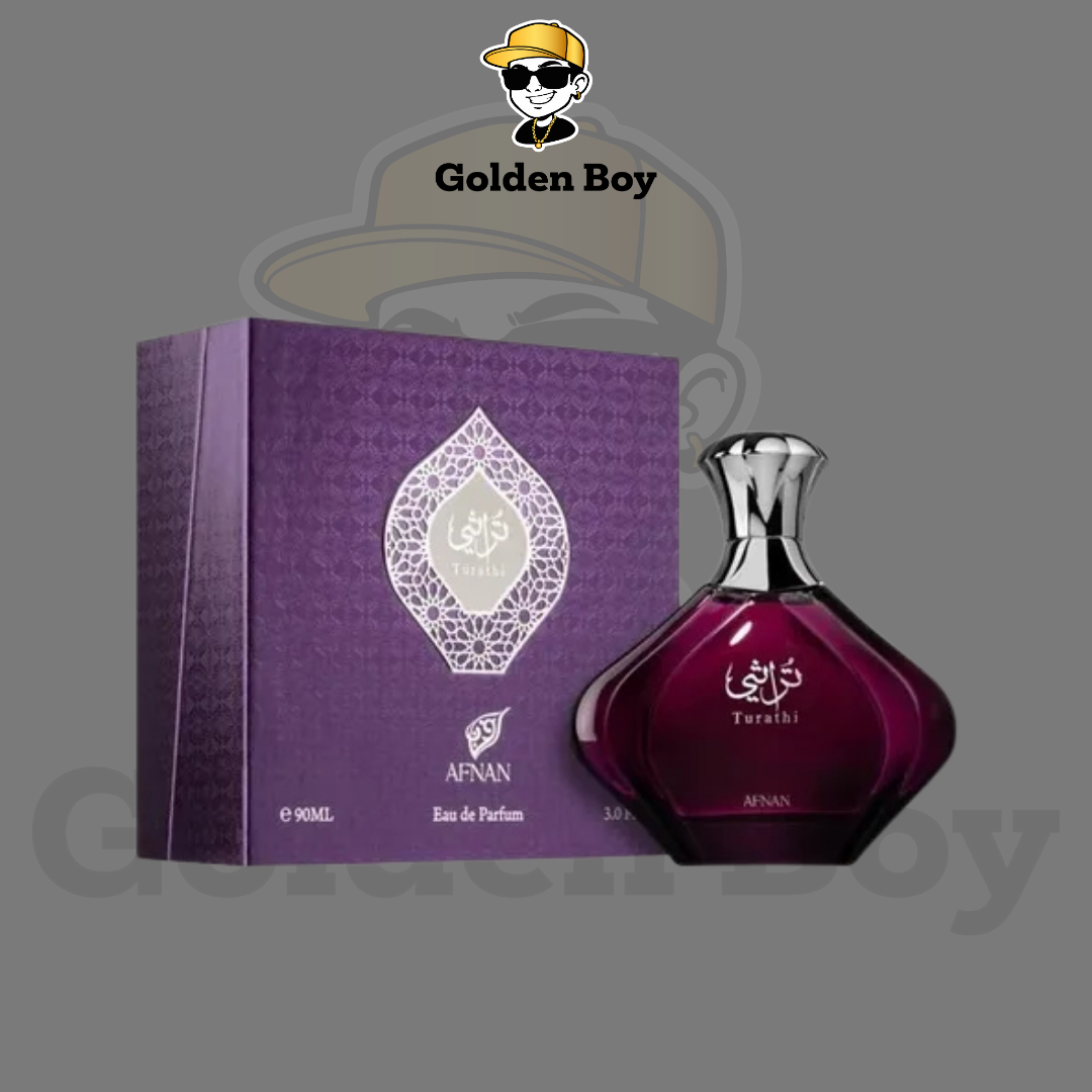 Turathi Purple de Afnan es una fragancia de la familia olfativa Aromática Especiada para Mujeres. Esta fragrancia es nueva. Turathi Purple se lanzó en 2023. Las Notas de Salida son Frutas rojas, cardamomo y pimienta negra; las Notas de Corazón son piña y jazmín; las Notas de Fondo son pachulí, musgo y vainilla
